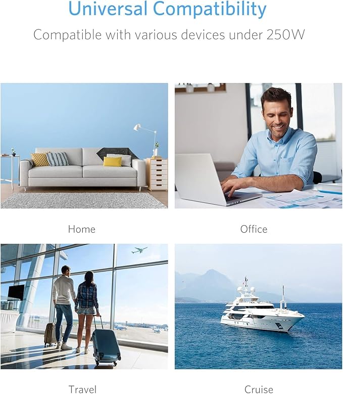 - Maximum Wattage: 250W(When simultaneously charging multiple devices,make sure the total wattage is less than 250 watts.) Do not use this power converter to charge your hair dryer regardless of their wattage.
