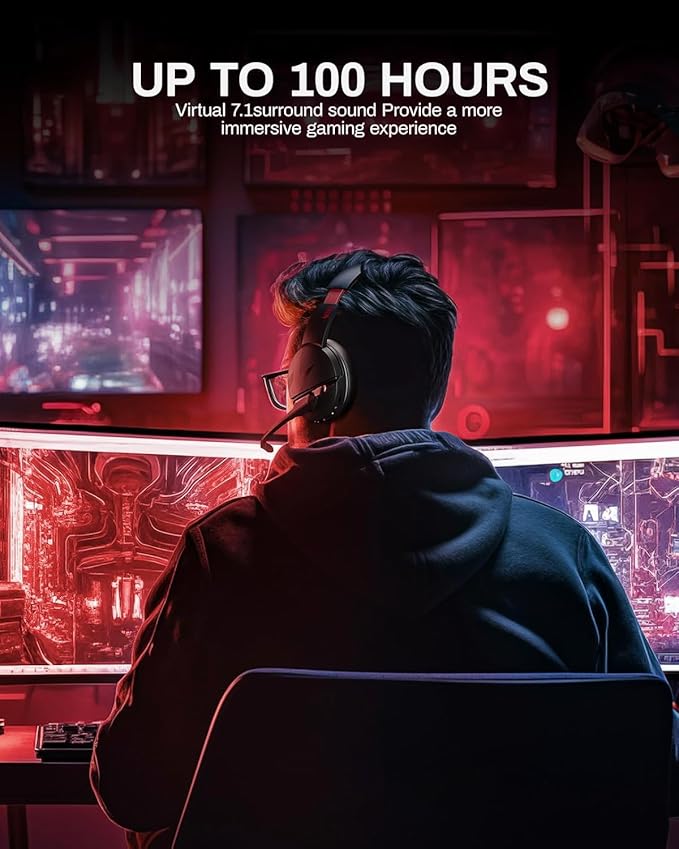- Ultra-Long Battery Life, UP to 100 Hours: The gaming headphones powers up to 80 hours on 2.4GHz or 100 hours via Bluetooth. A quick 10-min charge gives 3 hours of use, while a full charge lasts multiple gaming marathons. Ideal for long weekends, travel, or full-week work + play combos.