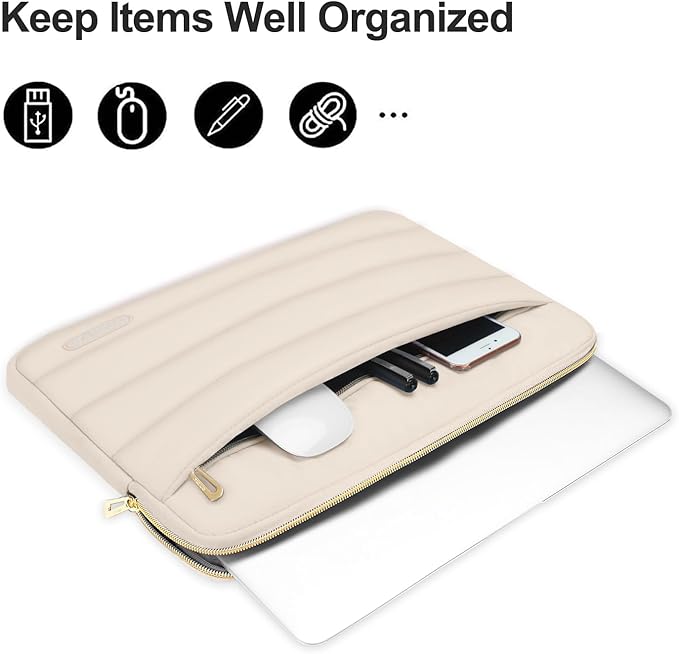 MOSISO 15-15.6 inch Laptop Case, 16 inch Puffy Laptop Sleeve Compatible with MacBook Pro 16, HP Dell ASUS Acer Toshiba Lenovo Notebook Computer, Polyester Horizontal Bag with Small Case, Sand