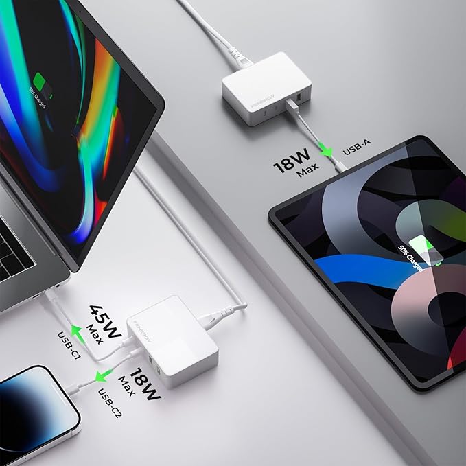 - High-Speed Charging: Connect a single device to get a 65W max charge. And when you connect four devices, power will be distributed efficiently between ports to ensure you get the best charge