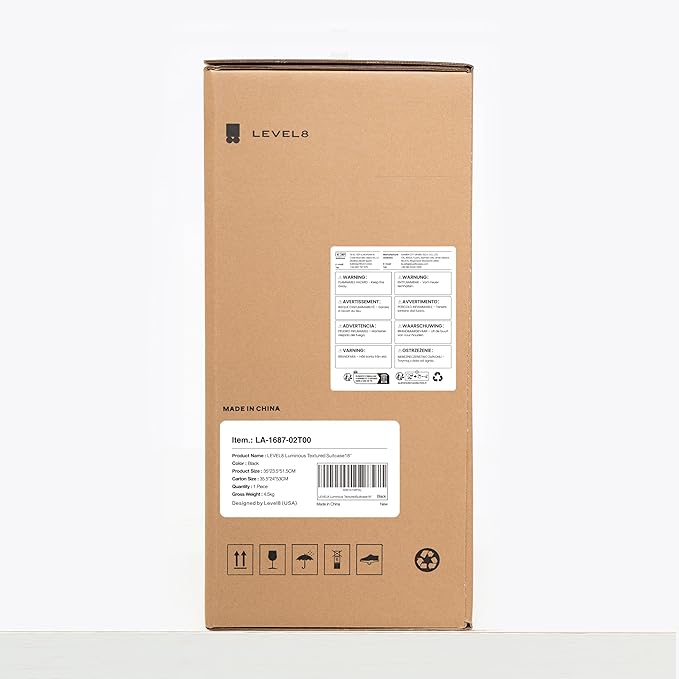 LEVEL8 Carry on Luggage Airline Approved, Small Carry-on Suitcases with Wheels, Lightweight Hardside Luminous Textured with Spinner Wheel, Tsa Lock, 18 Inch, Black