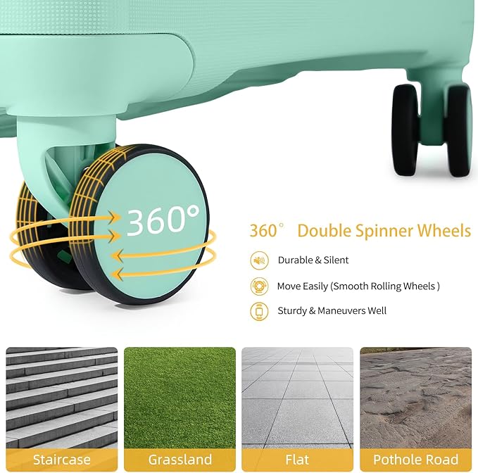 - Sturdy PP Material: Crafted from robust Polypropylene (PP) material, these suitcases are exceptionally resistant, providing resistance to abrasion and scratches for long-lasting reliability