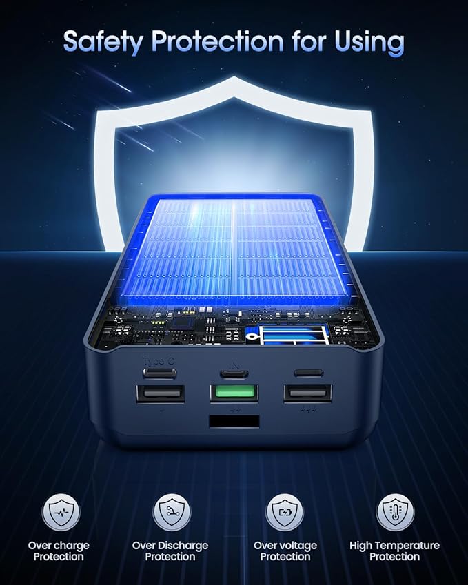 - Safety Powerful Phone Charger: This high capacity portable battery charger can charge your devices multiple times with multiple ports. Power bank adopt smart chips to prevent overcharge, overvoltage, overcurrent, and short circuit to ensure safety