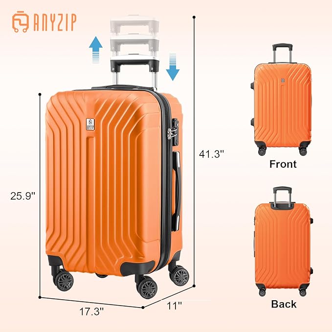 AnyZip Expandable Luggage, 24 Inch Hard Shell Checked Suitcase, Rolling Lightweight Travel Suitcases with Wheels TSA Lock (Orange)