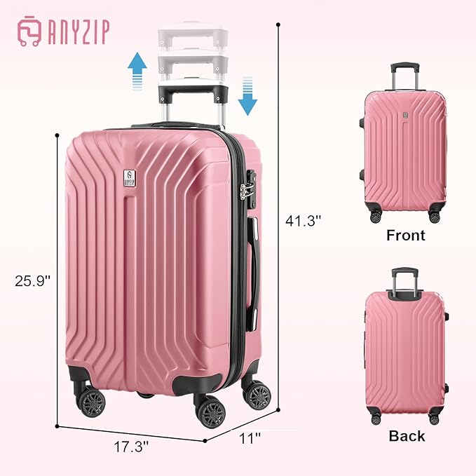 AnyZip Expandable Luggage, 24 Inch Hard Shell Checked Suitcase, Rolling Lightweight Travel Suitcases with Wheels TSA Lock (Pink)