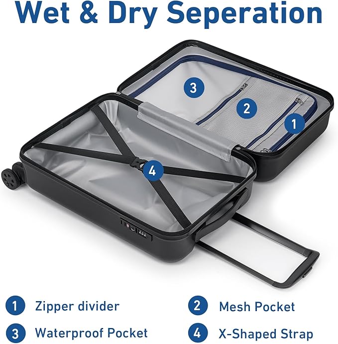 - Spacious & Super Organized: Pack like a pro with a full zipper partition, cross straps, and a game-changing wet-dry separation layer – keep toiletries secure and clothes bone-dry, no matter the weather!
