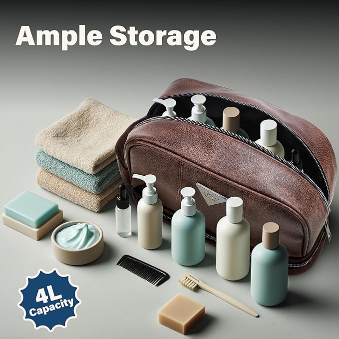 - HIGH-QUALITY & SOFT DURABLE MATERIAL: This exceptional leather toiletry travel bag for men is made of attractive PU Leather (soft synthetic leather), which is known for its lightweight yet durable qualities, the perfect combination for traveling