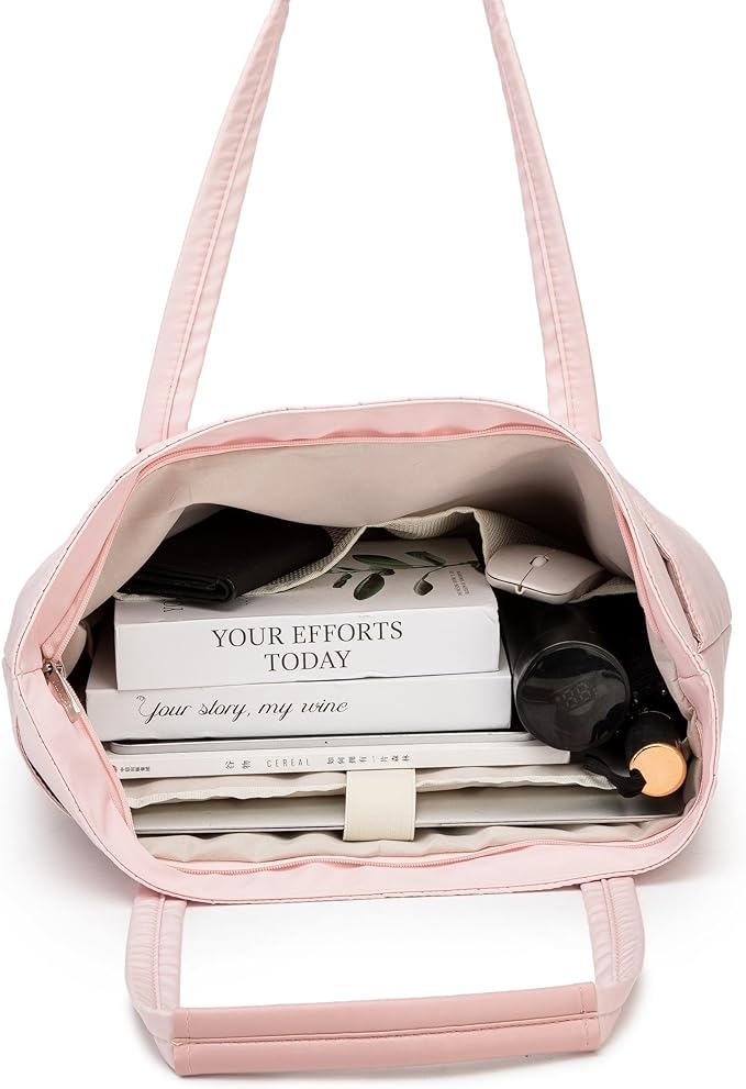 - Large Capacity: The laptop tote has a capacity of 28L, which can accommodate laptops up to 15.6 inch. It also has multiple compartments and pockets, providing ample space for your phone, wallet, keys, notebooks, books, water bottles, power bank, etc.