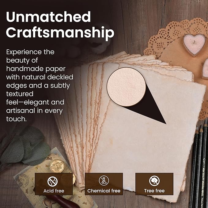 - THICK 150 GSM HANDMADE ACID FREE PAPER : Add a vintage touch to your creation with thick , textured and durable paper.