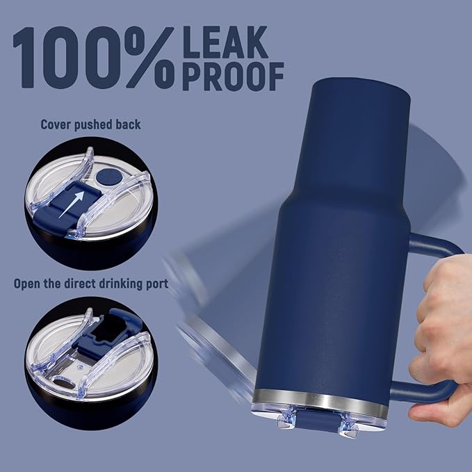 40 oz Tumbler with Handle and Straw Lid,Insulated Reusable Stainless Steel Water Bottle Travel Mug,Cupholder Friendly Double Wall Vacuum Sealed Cup (Navy)