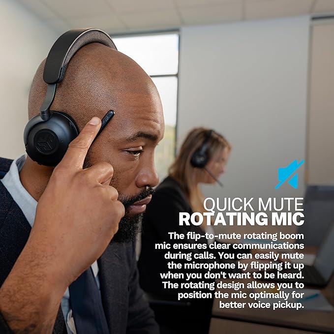 JLab Epic Work Wireless Headset with Microphone, Smart Active Noise Cancellation, Charging Hub, 90+ Playtime, Quick Mute, Bluetooth Headphones, Multipoint Connect, PC, Laptop, Mobile, (1 Pack)