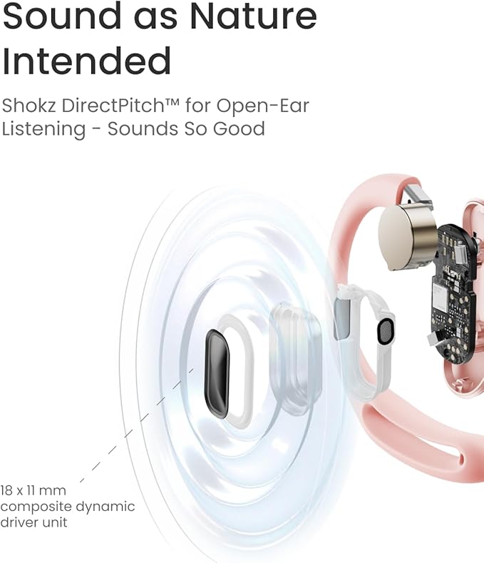 - Premium Sound - Shokz DirectPitch technology and innovative tuning holes deliver precise, natural audio with minimal leakage and deep, rich bass - all while leaving your ears open to the world around you.