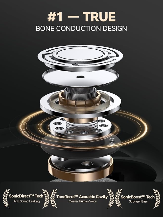 - ✅【Genuine Bone Conduction, Not Air Conduction】 - Our Open-Ear headphones are the world's FRIST ONE that feature an 11mm acoustic driver in true bone conduction design for powerful and authentic audio. SonicDirect Tech inside ensures clear audio direction without sound-leaking, protecting privacy.