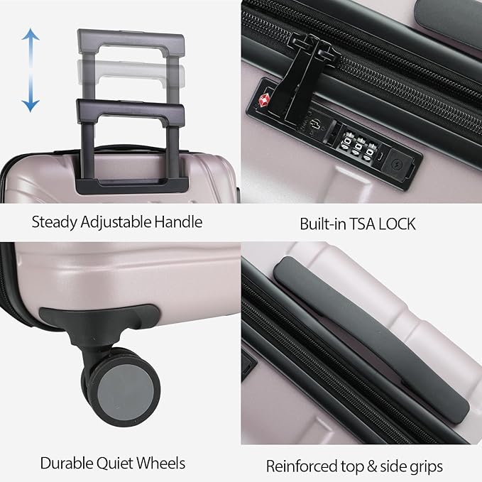 - 【High Quality Accessories】 Durable spinner wheels are composed of precision shaft center and thickened wheel skin, which are wear-resistant, quieter and have stronger bearing capacity. They are applicable to different roads such as cobblestone road and carpet road. Smooth and durable reinforced explosion-proof zipper reverse coil prevents burst zipper. TSA-approved combination lock is safe and convenient. The all aluminum telescopic handle is durable and adjustable in multiple layers.