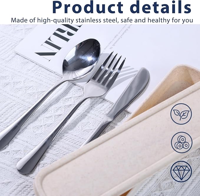 - Easy to Carry: Reusable silverware for lunch, keep all your tableware healthy and clean. You can take them to work or camp, just put them in your backpack, and, of course, you can always use them at home