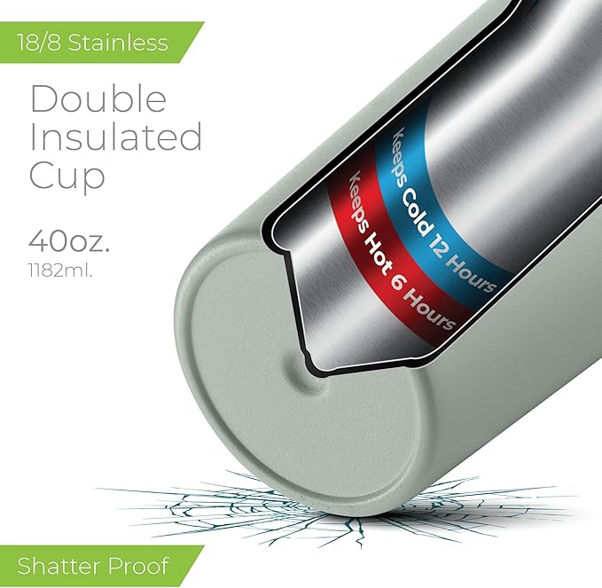 - DURABLE DESIGN - Our durable Water bottle is made of shatter-proof 18/8 stainless-steel, making it the perfect choice for rough-and-tumble use. It's safe in backpacks, beach bags, or on the edge of your countertop. Plus, it's dishwasher safe for easy cleaning.