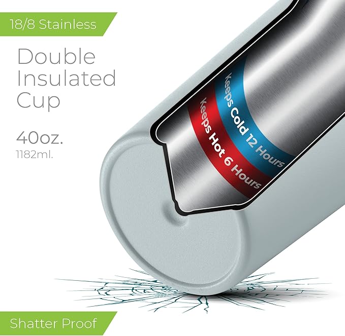 - DURABLE DESIGN - Our durable Water bottle is made of shatter-proof 18/8 stainless-steel, making it the perfect choice for rough-and-tumble use. It's safe in backpacks, beach bags, or on the edge of your countertop. Plus, it's dishwasher safe for easy cleaning.