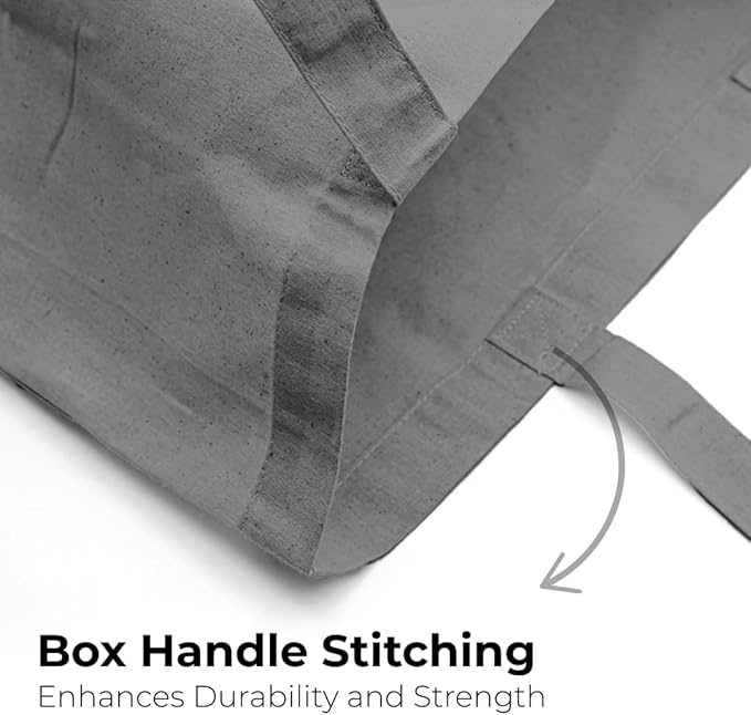 • Durable tote bags : Crafted from 100% natural cotton, these reusable grocery bags are built for durability. Featuring lock stitching inside and compacted stitching throughout, including cross-stitching at the handles, they boast maximum strength and bearing capacity compared to competitors. With two reinforced handles, these bulk tote bags offer convenience whether carried by hand or worn on the shoulder, making them sturdy and reliable for all your daily needs like for shopping store.
