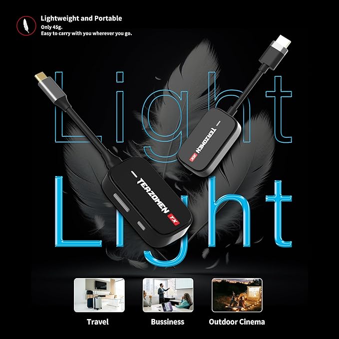 - 【Improve Efficiency and Plug & Play】This wireless HDMI transmitter and receiver without taking up much space, fast start-up and operation. USB powered, no annoying driver, you can wirelessly share any content on the big screen when you plug it in. It is very suitable for business talks and company meetings and for sharing meeting materials and more.