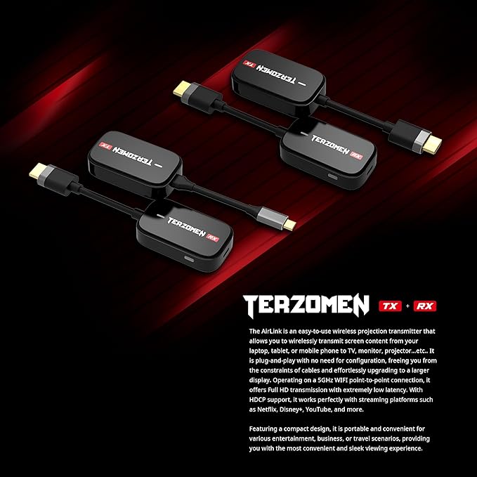 Wireless HDMI Transmitter and Receiver, Wireless Extender for Streaming Video/Audio to TV/Monitor/Projector from PC/Camera/Laptop, AirLink Dongle, to HDMI Display Adapter