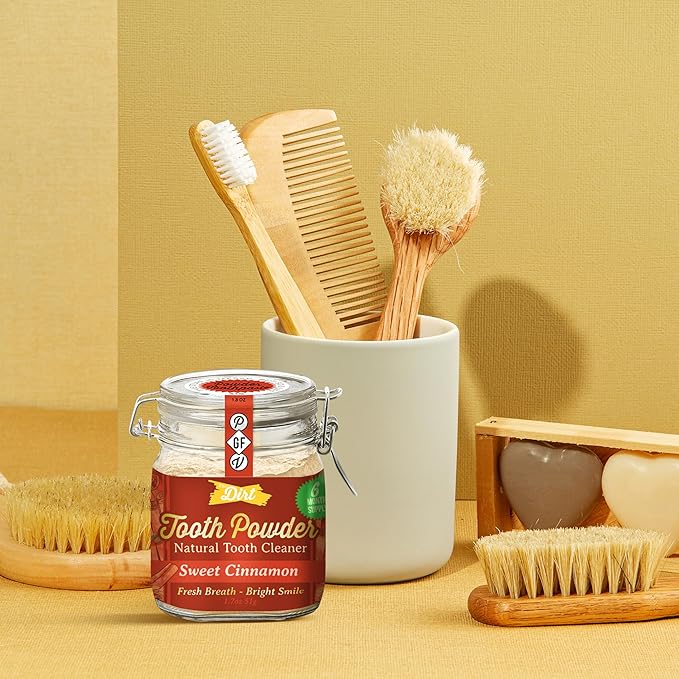 - 🌎 NATURAL, GLUTEN & FLUORIDE-FREE: Free from fluoride, SLS, parabens, and glycerine, The Dirt’s tooth powder offers gluten-free option for those seeking a clean and healthy oral care product. Great for people sensitive to corn, soy or gluten. Use with our tongue scraper and mouthwash for optimal benefits!