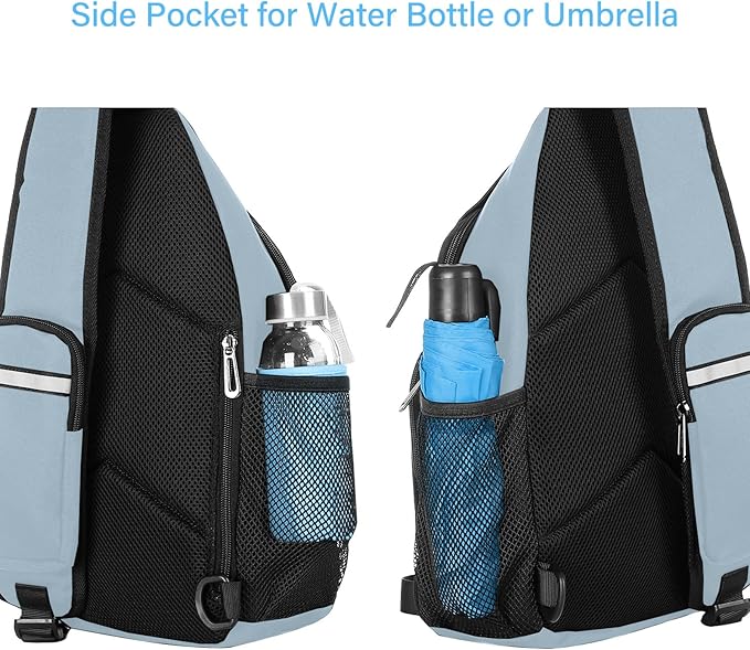 - Made of soft polyester material with gliding smoothly zippers and strap clip, allows you convenient access to your stuff. This sling bag is suitable for women men, suitable for outdoor sports (hiking, cycling, biking, walking, running, camping, climbing), office and business. This item is not intended for use by children 12 and under.