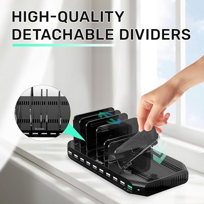 - Special Feature : SUIDEK 60W charging station for multiple devices rapid charging with innovative design. Allows you adjust the width of boards according to the device. The smart charger has protections against over-voltage, over-loading and short circuit, and also excellent ventilation system to prevent over-heat. SUIDEK 60W charging station for multiple devices rapid charging with innovative design. Allows you adjust the width of boards according to the device. The smart charger has protections against over-voltage, over-loading… See more