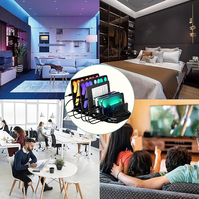 - 【Adjustable Dividers】Tablet charging station easily adjusts the width to fit different electronic devices such as tablets, readers, mobile phones, etc., even if the USB device is packed in a thick case, preventing the device from being scratched