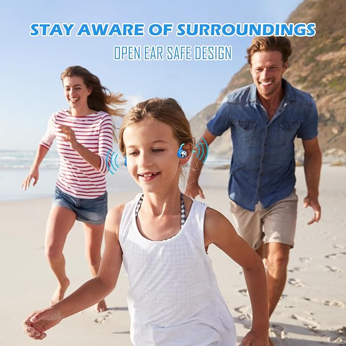 - [Unique Open Ear Experience in a Perfectly Safe Way]: Elevate your child's auditory journey with our cutting-edge air conduction technology. There will be no piece that extends into ear canal, no pressure on ear as well. Immerse in crystal-clear sound while maintaining awareness of surroundings, kids can hear you well while enjoying their audio content with this headset, perfectly for car driving or long time trip.
