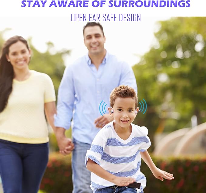 - [Unique Open Ear Experience in a Perfectly Safe Way]: Elevate your child's auditory journey with our cutting-edge air conduction technology. There will be no piece that extends into ear canal, no pressure on ear as well. Immerse in crystal-clear sound while maintaining awareness of surroundings, kids can hear you well while enjoying their audio content with this headset, perfectly for car driving or long time trip.