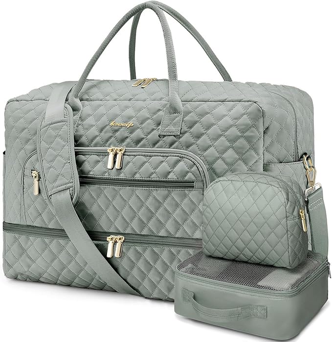 Large Women Travel Duffle Bag, Weekender Bags for Women with Shoe Compartment, Carry on Overnight Bag with Toiletry Bag, Gym Duffel Bag with Wet Pocket, Hospital Bags for Labor and Delivery 3 PCS Set