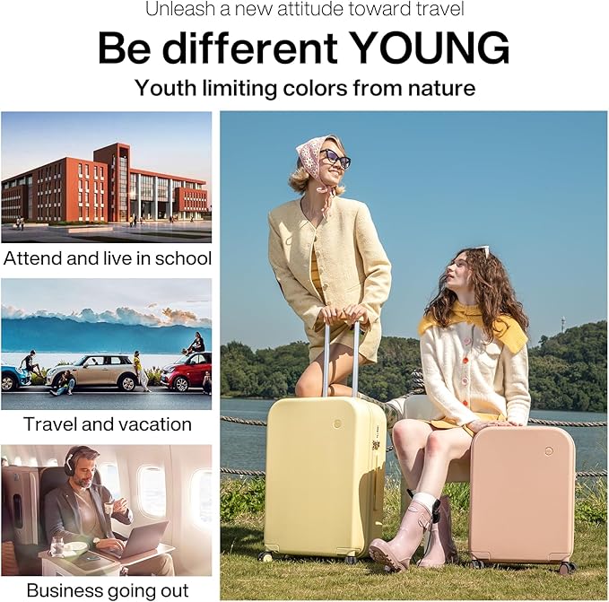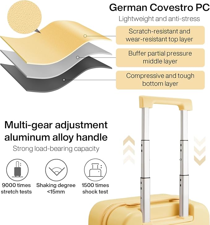 - Simple & Fashionable Suitcase, Combined with THREE-LAYER Bayer PC material which is called “Soft Steel” for hardshell, which make the luggage durable, wearable and lighter than ABS or ABS+PC suitcases. The color of this series hardside rolling suitcase is fashionable and bright and available in 16in 20in 22in 24in 26in 28in, please check our size chart/description carefully before placing an order and choose the right one for the upcoming travel.