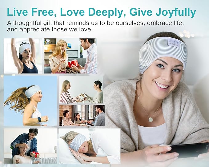 - MUSICOZY 2 in 1 Sleep & Sports Headband - The Bluetooth Headband enables you to enjoy music without wearing extra headphones, while keeping your hair and sweat from tidy. It further features a built-in microphone to prevent missed calls. The headband is suitable for outdoor activities such as gym workouts, jogging, yoga, and other outdoor activities. Additionally, it can assist with relaxation, meditation, travel, and more.