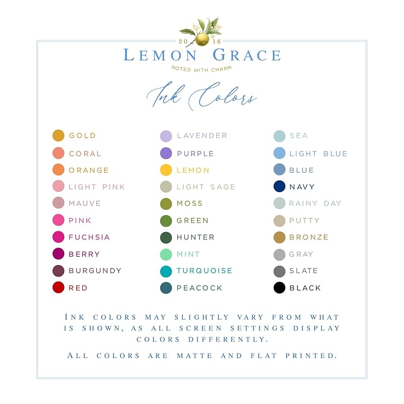 - COMPANY GUARANTEE - Lemon Grace Co is a leading small stationery company, offering one-of-a-kind, classic designs that have been featured in British Vogue Emma Watson: In The Bag | Episode 17 and Entertain and Celebrate Magazine. Our team works diligently to ensure order accuracy and quality. If for any reason, you are not satisfied, please reach out to us and we will go above and beyond to make it right!