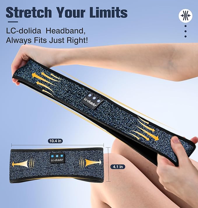 - Comfortable Cooling and Stylish Bluetooth Headband: LC-dolida Fashion Pattern Designed Bluetooth Sport Headband for Sleep Headphones is made of highly elastic and breathable materials, including durable braided cables, highly elastic lining and sweat-wicking design. Keeps you comfortable after sweaty workouts; The included straps help prevent sweat drips from getting into your eyes; The elastic and well-built sleep headphones fit a variety of head shapes. Durable and easy to clean.