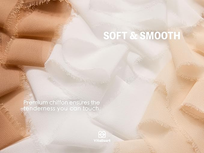 - Premium silk-like chiffon fabric ribbon. Very sheer, soft and easy to cut.