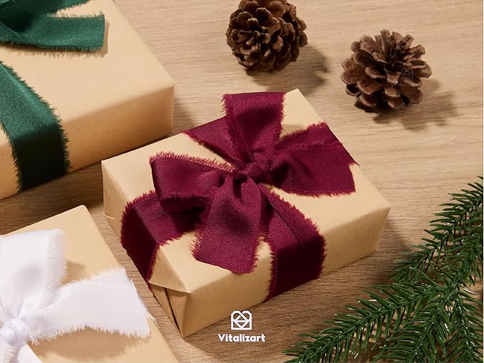 Vitalizart Silk Satin Ribbon 1 inch x 15 Yard Christmas Handmade Frayed Ribbons for Gift Wrapping Baby Shower Wedding Bridal Bouquets Holiday Decor Green Red White