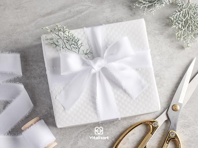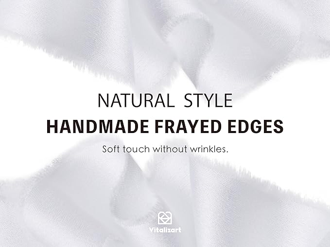 Vitalizart Silk Satin Ribbon 1 inch x 15 Yard Off White Handmade Frayed Ribbons for Gift Wrapping Baby Shower Wedding Bridal Bouquets Holiday Decor