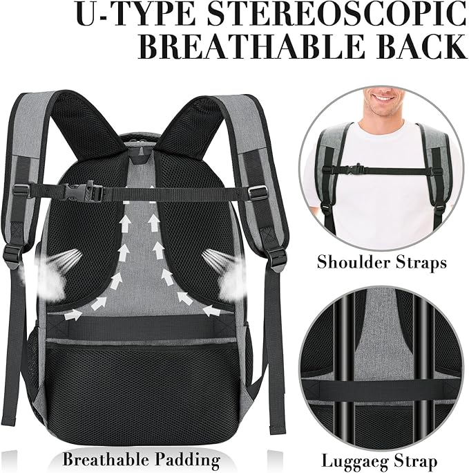 - ★ COMFY&STURDY: Comfortable airflow back design with thick but soft multi-panel ventilated padding, gives you maximum back support. Breathable and adjustable shoulder straps relieve the stress of shoulder. Foam padded top handle for a long time carry on.