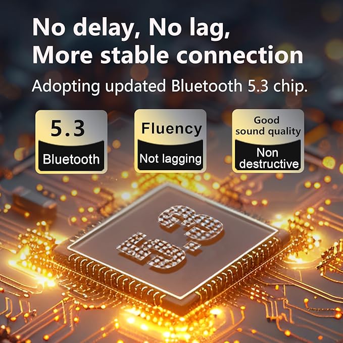 - Bluetooth 5.3 Technology: Powered by Bluetooth 5.3, they support versatile protocols: HSP (Headset Profile), HFP (Hands-Free Profile), AVRCP (Audio/Video Remote Control), and A2DP (Advanced Audio Distribution) for seamless connectivity and audio streaming. A built-in ceramic antenna ensures a stable 10m (33ft) wireless range, keeping you connected without tangles or dropouts.