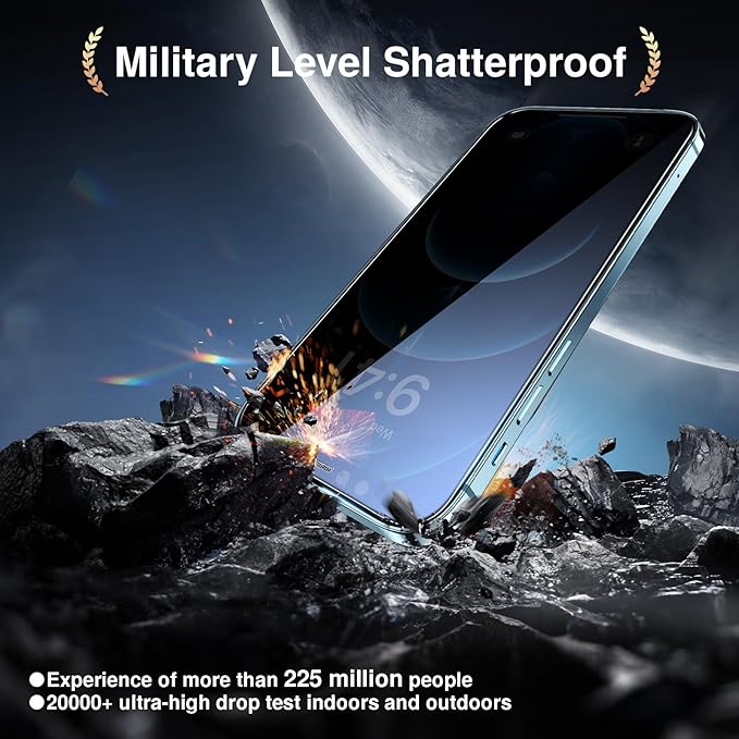 - 【Ultimate Scratch Protection】 The privacy screen protectors for iPhone 12 Pro Max are made of high-quality 9H+ Tempered-Glass,has SGS certified military grade shatterproof protection, 5X stronger than ordinary glass. After 3000+ drop tests, the screen has no scratches or cracks.The accident of phone drop can't avoid, but choose us, say goodbye to broken screen.