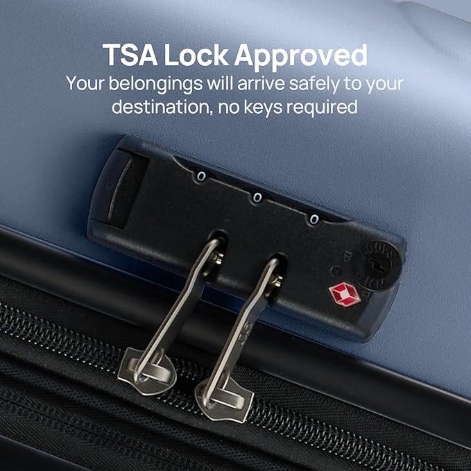 - 【TSA Lock Included】The built-in TSA-approved lock (default password: 0-0-0) ensures your belongings stay secure while allowing airport security to inspect your luggage without damage. Set your own password for added peace of mind.