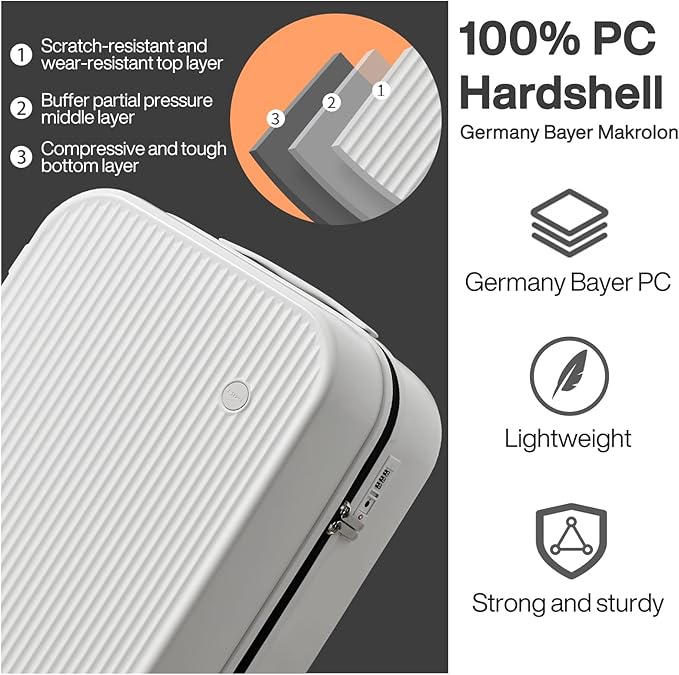 - 【DURABLE&STURDY MATERIAL】German Covestro PC material is called “Soft Steel” which is extremely scratch-resistant, it ensure this travel luggage’s high quality performance which is built to be your trusted companion to travel.