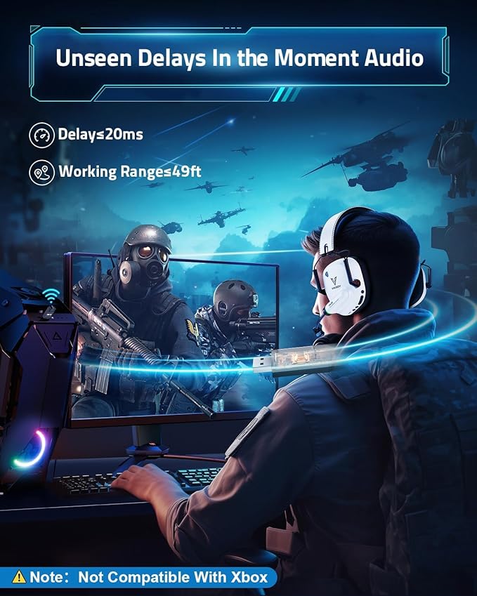 - ใ๐๐ข๐ซ๐๐ฅ๐๐ฌ๐ฌ ๐ ๐ซ๐๐๐๐จ๐ฆ, ๐๐ฆ๐ฆ๐๐ซ๐ฌ๐ข๐ฏ๐ ๐๐ซ๐๐๐ข๐ฌ๐ข๐จ๐งใUnleash the full potential of gaming with our 2.4GHz ultra-low latency wireless gaming headset, offering up to 49 feet of unrestricted movement in unobstructed spaces with imperceptible latency (โค20ms) for a smoother gaming experience. Combined with a 50mm dynamic coil driver, allowing you to clearly perceive directional sounds, footsteps, and every detail in the game for an immersive gaming world