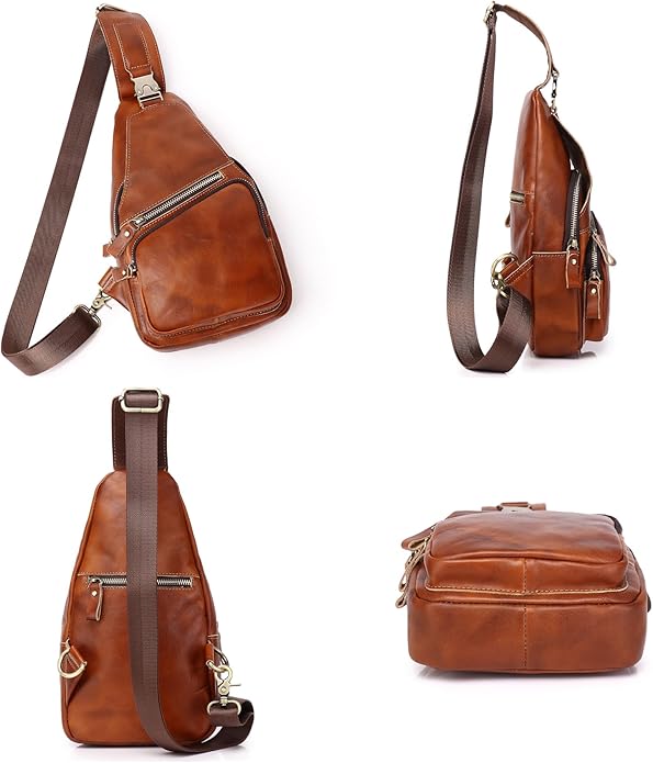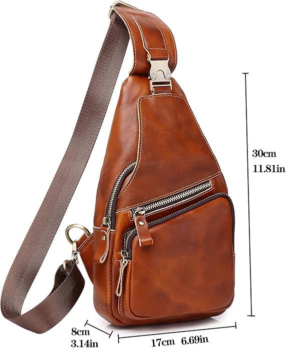 Genuine Leather Sling Bag for Men Women Backpack Chest Shoulder Satchel Crossbody Bags Casual Outdoor Daypack