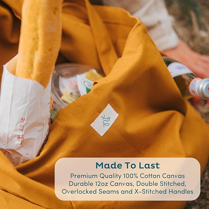 - Made To Last - Our reusable grocery bag is crafted from 100% natural unbleached cotton canvas, featuring a robust 12oz weight and reinforced by double-stitched seams, ensuring it's not only durable but also an eco-conscious choice for everyone.