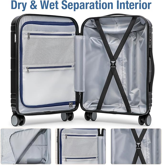KYME Carry On Luggage 22x14x9 Airline Approved with TSA Lock Hard Shell Carry On Suitcase Lightweight Suitcases with Wheels Small Luggage for Men Women,Carry-On 20 Inch,Black
