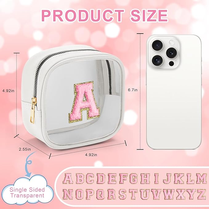 - 【CLEAR DESIGN】The makeup bag is made of high quality clear PVC material with a transparent exterior, so you can quickly see what you are storing and where. Our cosmetic bag has a large capacity, measuring 13.2" * 3.1" * 5.9", with plenty of storage space, Mini Clear Make up bag size : 4.92in*2.55in*4.92