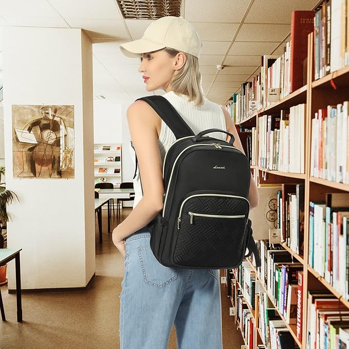 LOVEVOOK Laptop Backpack for Women, Stylish Quilted Backpacks Purse for Business Work Travel, Computer Bags Bag, with USB Port fits 15.6-inch Laptop, Black