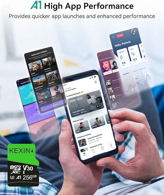 KEXIN 256GB Micro SD Card with SD Adapter microSDXC Memory Card UHS-I A1 V30 U3 Micro SD Card Full HD High Speed TF Card for Smartphone Tablet Action Camera Dash Cam Drone Game Console